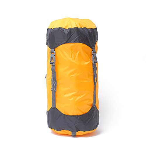 コンプレッションバッグは防水で軽量。寝袋や衣類を圧縮でき、キャンプ、登山、アウトドアに最適。サイズはS、カラーはオレンジです。