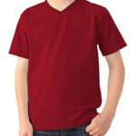 Fruit of the Loom Boys Heavy Cotton HD T-Shirtは100%コットン製で、快適な着心地を提供します。カラーはマッキントッシュレッドで、Vネックデザインが特徴。サイズは小さめです。