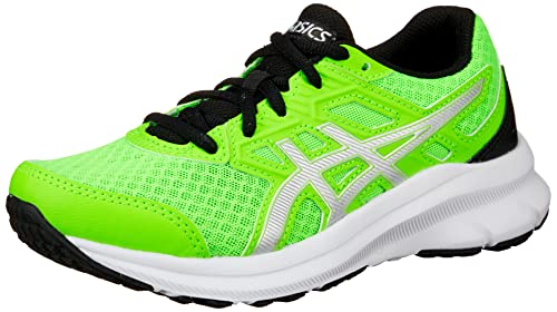 アシックスのJOLT 3 メンズランニングシューズ、300(グリーンゲッコー/ピュアシルバー)は、快適なフィット感とクッション性を提供。サイズ24.5 cm、2E幅で、ランニングや日常使いに最適な一足です。