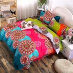 ボヘミアンスタイルの布団カバー4点セット(セミダブル)。ローズピンクのデザインで、掛け布団カバー、ボックスシーツ、枕カバーが含まれています。おしゃれで心地よい寝室を演出するアイテムです。