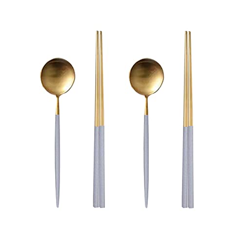 andooのゴールドカトラリーセットは、ディナースプーン2本とお箸2膳のセット。おしゃれなデザインで、18-8ステンレス製。食洗機対応。プレゼントにも最適!