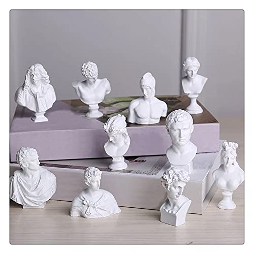 ミニクラシックギリシャの胸像・彫像セット。ミケランジェロのデビッドやアフロディーテなど、10個のレジンフィギュア(各2.7インチ)。おしゃれなホームデコに最適。