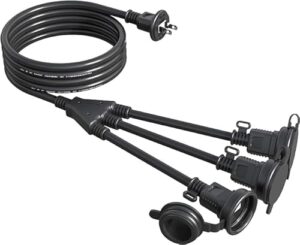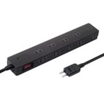 スタイルド雷ガードブレーカー付き10個口電源タップ。便利な一括集中スイッチ、磁石で固定可能なスイングプラグ。コード長さ2m、ブラックカラー。安全と利便性を兼ね備えた延長コードです。