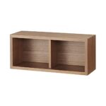 無印良品の壁に付けられる家具、「箱」はウォールナット材を使用。サイズは幅44×奥行15.5×高さ19cmで、シンプルなデザインが特徴。壁に取り付けることで省スペースを実現し、収納力をアップします。