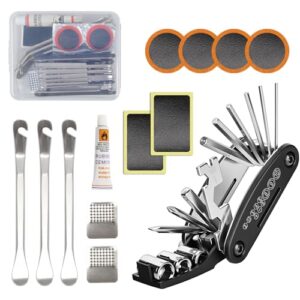自転車パンク修理 工具セット 13点 Oziral自転車 タイヤ修理キット 16-in-1多機能マルチツール ゴムのり タイヤパッチ 補修 タイヤレバー やすり 軽量 便利 コンパクト メンテナンス 応急修理用