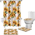ひまわり柄のバスルームカーテンセットは、明るく鮮やかなデザインで、バスルームに華やかさを加えます。防水素材使用、洗濯機で洗えるのでお手入れも簡単。サイズは標準的で、取り付けも簡単。