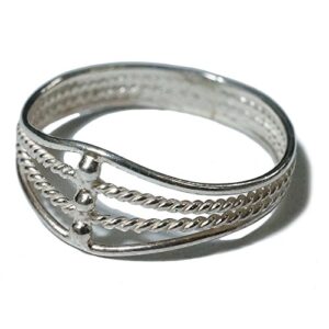 クリームドットのリングは、女性向けデザインで金属アレルギー対応のステンレス製。ひねりやねじりのあるツイストデザインが特徴で、普段使いに最適。ゴールドカラーで20号サイズ。
