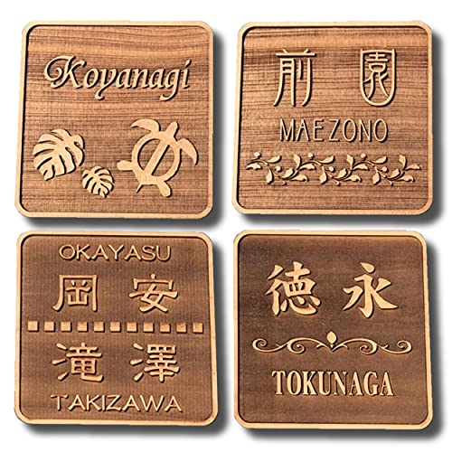 天然木製の表札プレートは、110mm×110mmの自由サイズで、アンティークレトロなデザインが魅力。浮彫りや凸文字の仕上げが特徴で、マンションやアパートの玄関に最適です。サイズ変更可能で、標準素焼き仕上げ。