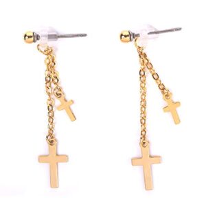 PLUSTER ロングピアス 揺れる チタン 金属アレルギー対応 クロス バックチャーム ゴールド レディース [専用ポーチ付き] 人気 誕生日 プレゼント 母の日 ジュエリー プラスター