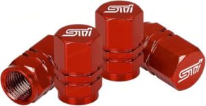 スバル STI タイヤエアバルブキャップ 車 バルブステムキャップ アルミニウム合金タイヤバルブ STI レガシィ インプレッサスポーツ フォレスター レヴォーグ アウトバック エクシーガ B4 車 自転車用のダストキャップ 車 バイク 軽量 高強度アルミ 製 腐食 防止 アルマイト 仕上げ 自動車 オートバイ 用 ホイール エア バルブ キャップ 4個セット (レッド) [並行輸入品]