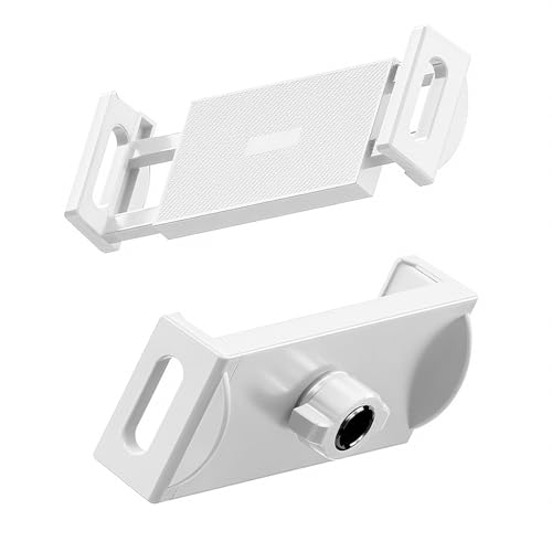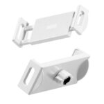 タブレットスタンドは360度回転可能で、高さ調節や主体調節ができます。折り畳み式のフレキシブルアームは寝ながら使用でき、根元が強化され下垂防止。4.5インチから12.9インチのデバイスに対応。色はホワイトです。