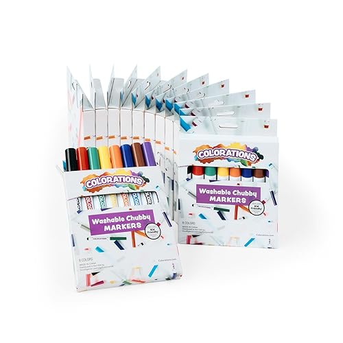 Colorations ぽっちゃりマーカーは、8色の12本パックで提供される子供用のカラーマーカーです。ぬり絵やポスター、お絵かきに最適で、無毒な安全な素材を使用しています。自宅や教室での学用品、手芸プロジェクトにも適しています。