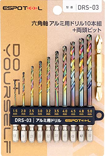 【Amazon.co.jp限定】ESPOTOL 六角軸アルミ用ドリル10本組+両頭ビットセット。アルミ材料に最適な設計で、精密な穴あけが可能。耐久性が高く、使いやすさを兼ね備えた工具です。