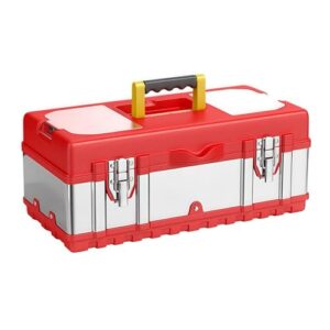 Quxxuolツールボックス ステンレス鋼製工具入れ 複数のコンパートメントを備えた二重層の大容量、家庭用、車の修理、大工仕事、溶接に適した耐久性と耐圧性のある (ステンレス製ツールボックス,17インチ)