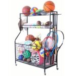 Lhysnスポーツ用品収納ラックは、キャスター付きで移動が便利。金属メッシュシェルフでボール整理が簡単。省スペースで丈夫、ガレージやジム、学校など広範囲に適応。