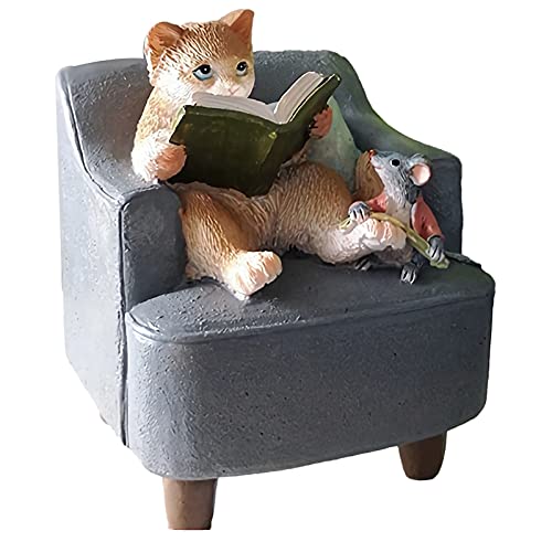 この猫とマウスの庭の彫刻は、3.15インチの高さで座っている子猫のデザインです。ソファ樹脂アート置物として、屋外の植木鉢を華やかに彩ります。