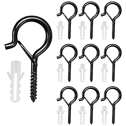 YFFSFDCの10個入り天井フックは、炭素鋼製で安全バックルデザインを搭載。全長55mm、ネジ込み式で簡単取り付け。ライトや植物の吊り下げに最適。プラスチック拡張ピン付き(ブラック)。
