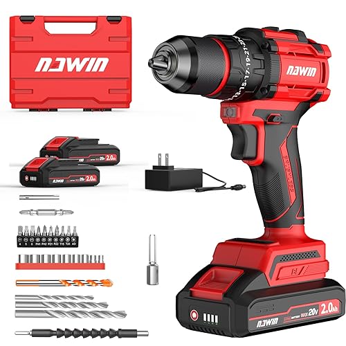 ナウィンの2025新型電動ドリルドライバーは、2.0Ah電池2個、ブラシレスモーター、無段変速、20+3段クラッチを搭載。穴あけ・ネジ締めに最適で、高輝度LED照明や豊富な付属品も付属。収納ケース付きで便利。