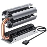 Ineo M.2 2280 SSD用アルミニウムヒートシンク。角度調整可能なヒートパイプ搭載。6000RPMの30mm PWM冷却ファンで効果的に冷却。
