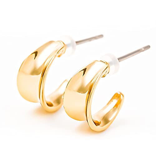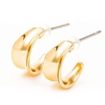 PLUSTERのフープピアスは、金属アレルギーに対応したチタン製。直径10㎜、イエローゴールドカラーで、逆甲デザインが特徴。専用ポーチ付きで、誕生日やプレゼントに最適なジュエリーです。