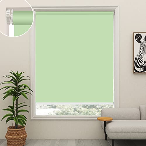 SAIFANSIのロールスクリーンは、幅80CM×丈90CMのサイズオーダー対応。1級遮光、UVカット、断熱・遮熱機能付き。穴あけ不要の突っ張り式、チェーン式で取り付けも簡単。カラーはグリーン。