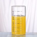 ミルクグラスの計量カップは耐熱ガラス製で、ジュースやお茶、コーヒーに最適。容量300ml、目盛り付きでMLとOZ表記。電子レンジや冷蔵庫に対応し、自宅や店舗で便利。ハンドルなしのブラックデザイン。