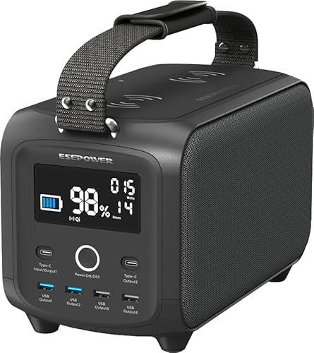 ESEPOWERポータブル電源は、400W出力、414Wh/112000mAhの大容量を持つ軽量・小型蓄電池です。2枚のワイヤレス充電、急速充電機能搭載。非常用電源やキャンプに最適。