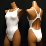日本製の2Wayレオタード、白色、Lサイズ。新体操や器械体操に最適なデザイン。伸縮性があり、動きやすさを重視。長時間の練習でも快適に着用できる素材を使用。