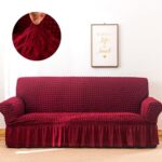 / ソファカバー 肘付き2人掛け 3人掛け フリルそふぁーかばー ひんやり マルチカバー 肘あり ストレッチ素材 汚れ防止 キズ防止 伸縮性良く 柔らかい ふわふわ 北欧風デザイン ソファー保護 猫 洗える 厚手 おしゃれ 優しい肌触り感 四季適用 (ワインレッド, 三人掛け)