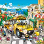 エポック社の2000スーパースモールピースジグソーパズル、PEANUTSハッピースクールバスです。サイズは38×53cm、54-220sで、のり付き、ヘラ付き、点数券も付いています。
