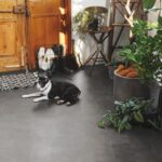 壁紙屋本舗のクッションフロアは、約90cm幅で土足用、ペット対応の滑らない消臭機能付きの石目大理石デザイン。黒色で拭ける床シート、トイレや玄関に最適。サイズは約91cm×100cmで受注生産品、キャンセル不可です。