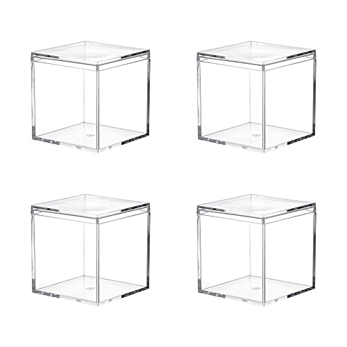 Dayaaneeの4パック蓋付き透明アクリルボックスは、サイズ3.3インチ(85mm)角の小型収納容器です。キャンディーや小物、ジュエリーの収納に最適です。