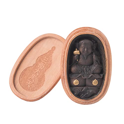 三面大黒天の懐中念持仏は木製で、開眼供養済みの尊い御守りです。香合仏としても使え、バッグチャームやキーホルダーとして持ち運びが便利。ダル木で作られた精巧なデザインが特徴です。