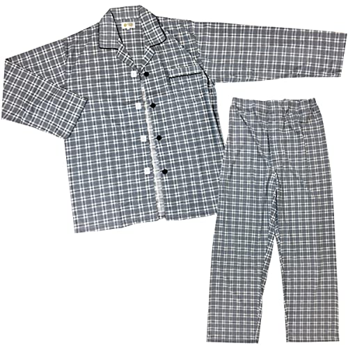 ハナサンテラスの介護用パジャマは、紳士向けの長袖上着で、マジックテープ式を採用。秋冬春に対応し、綿混素材で快適。ウエストゴム調整機能つきで、M、L、LLサイズから選べます。