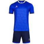 ケルメのサッカーユニフォーム、メンズ用上下セット。スタイリッシュなディープブルー色で、Tシャツとパンツが含まれています。快適なフィット感と動きやすさが特徴,サッカーやフットサルに最適なウェアです。サイズはXL。