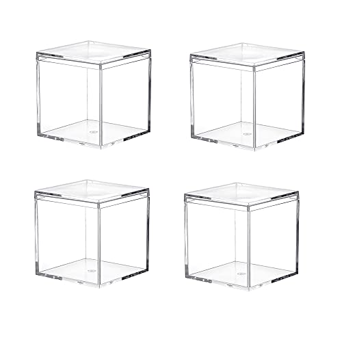 Dayaaneeのクリアアクリルプラスチック正方形キューブ(4個パック)は、2.9×2.9×2.9インチ(75x75x75mm)のサイズで、蓋付き。キャンディや小さなジュエリーの収納に最適です。
