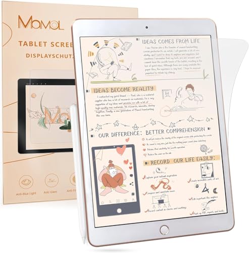 iPad 10.2用(第9/8/7世代)ペーパーライクフィルム2枚セット。紙のような描き心地で反射低減、アンチグレアの効果、指紋防止機能付き。