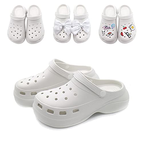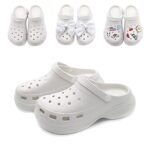 レディース クロック サンダルは厚いハイヒールデザインで、EVA素材を使用しています。DIYでアクセサリを楽しめるビーチサンダル。履き心地が良く、看護師にもおすすめのファッションシューズ。ホワイトカラー、サイズ23.0-23.5cm。