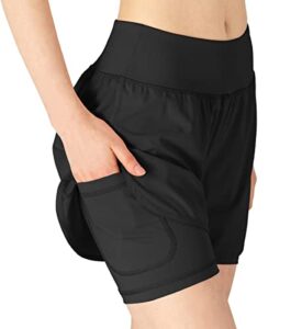 ランニング ショートパンツ レディース スポーツ ハーフパンツ インナー付き スマホポケット テニス 短パン 部屋着 トレーニングウェア ストレッチ ヨガパンツ ショート ゴルフウェア ジョギングパンツ ブラック L