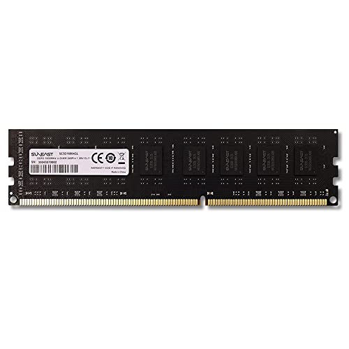 SUNEASTのデスクトップPC用メモリは、4GBのPC3L-12800(DDR3L-1600)で、240pinのU-DIMMです。1.35Vに対応し、無期限保証が付いています。