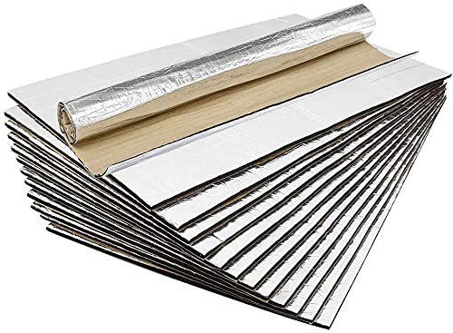 車用断熱マットは5MM厚のアルミ箔とフォームで構成され、熱反射と吸音効果を持つ。サイズは50cm×30cmで12枚入り。エンジンやドアの断熱・防音に最適です。