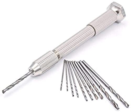 実用的なステンレス製ピンバイス手動ドリル。クラフトやアクセサリー制作に適し、電源不要の便利な10本セット。クルミやプラスチック、真珠などに穴あけが可能。