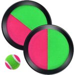 DKLOのキャッチボールマジックテープセットは、外遊びに最適なアウトドアおもちゃです。粘着式のフライングディスク2枚とボール1つを含み、ラケットゲーム感覚で楽しめます。