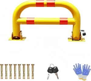 LorDerBing Uタイプ 駐車場ポール パーキングブロック 車止め ポール 横型 平行棒 駐車バリア キーロック可能 厚い手 冷間圧延鋼 丈夫 耐久性 反射テープ付き 折りたたみ 地面固定式 置くだけ ガレージ 私道 車庫 家庭用 盗難防止 簡単なインストール 車庫アクセサリ (80*33CM,イエロー)