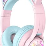 iClever BTH13は子供用の猫耳Bluetoothヘッドフォンで、音量制限(74/85 dBA)付き。45時間のプレイタイムとマイクを搭載。学校やタブレット、PCに最適なピンクのデザイン。