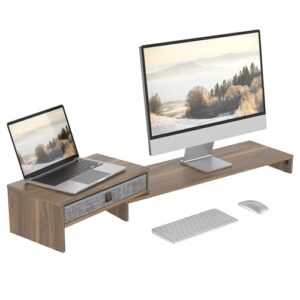 Fenge モニター台 机上台 パソコン台 モニタースタンド 横幅78.3-113cm 木製天板 PC台 卓上 モニター台 机上ラック ノート pcモニター台 パソコンラック 卓上 引き出し収納G04D108-MAIN (ブラウン)