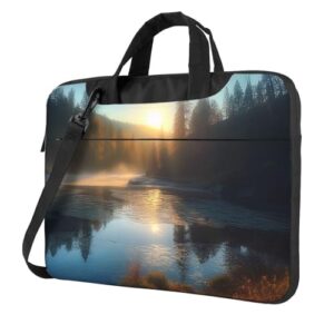 山林の湖の日の出 ノートパソコン トートバッグ 男女兼用 13インチ ラップトップ スリーブ ショルダー ブリーフケース メッセンジャー コンピューター バッグ