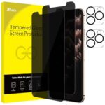 JETech iPhone11ProMax用プライバシー保護フィルムとカメラフィルムのセット。強化ガラス製、覗き見防止機能を備え、6.5インチサイズ。画面とカメラを保護する2枚ずつの計4枚が付属。