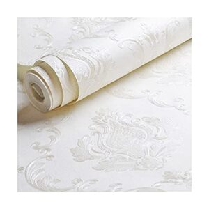 [AiO JAPAN] 壁紙 ダマスク柄 ホワイト 白 damask 53cm×1000cm DIY のりなし かわいい おしゃれ クロス 補修 ラグジュアリー 北欧