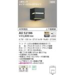 コイズミ照明の防雨型ブラケットエクステリアライトAU52186は、LED電球色を使用した屋外用照明で、耐候性があり、外壁や門柱などに最適です。シンプルなデザインで、広範囲を明るく照らします。